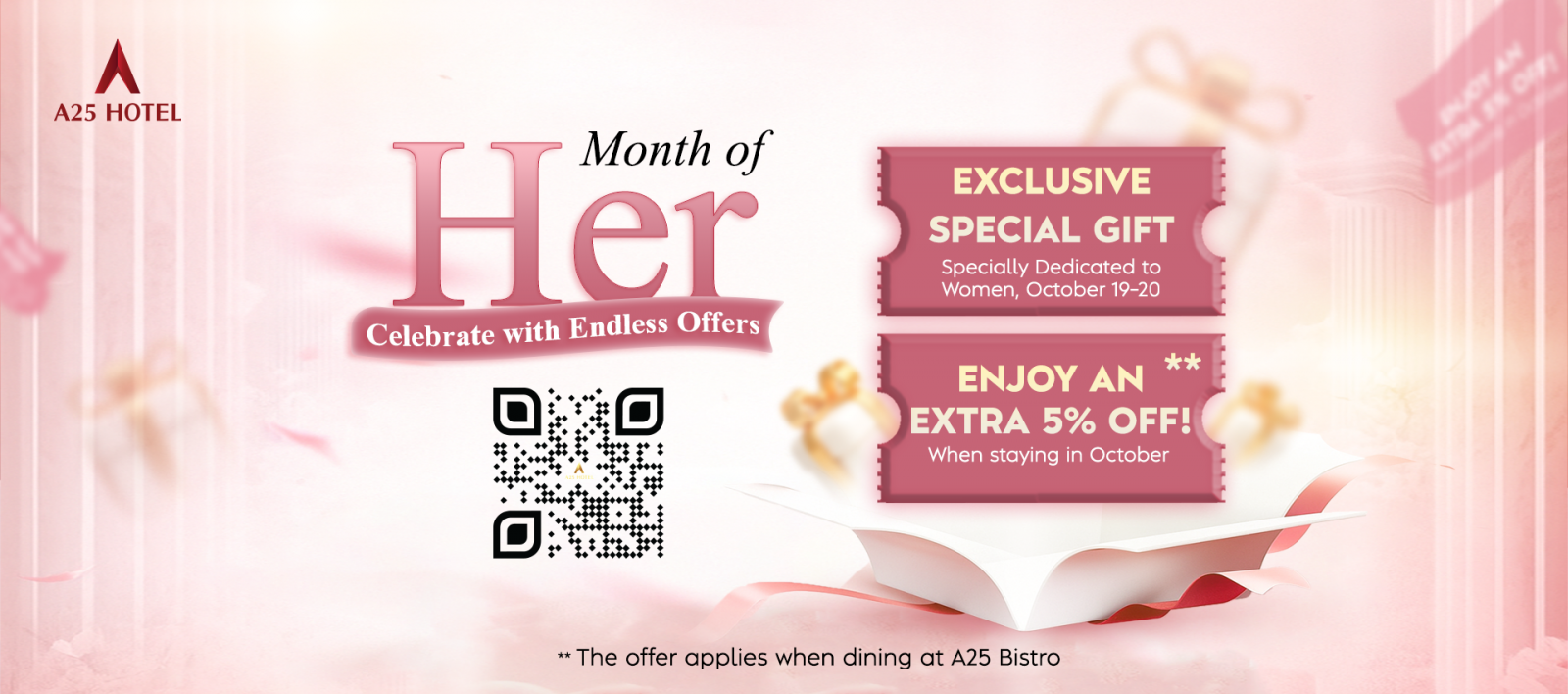 In celebration of the vibrant spirit of Vietnamese Women’s Day on October 20th, A25 Hotel is proud to present a special appreciation program exclusively for women. With a charming gift box and attractive offers, we aim to bring you a warm, elegant, and love-filled stay. This is a perfect occasion for you and your beloved women to enjoy relaxing, memorable moments at A25 Hotels nationwide.