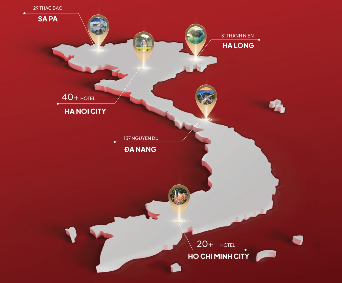 Một trong những điểm mạnh lớn nhất của A25 Hotel chính là vị trí chiến lược. Hệ thống khách sạn của chúng tôi đều tọa lạc tại các khu vực trung tâm, nơi có sự giao thoa mạnh mẽ về văn hóa và du lịch, tại các thành phố lớn như Hà Nội, TP. Hồ Chí Minh, Đà Nẵng, Hạ Long và Sapa. Điều này giúp du khách dễ dàng khám phá và đắm chìm trong nhịp sống sôi động của các thành phố lớn, cũng như hòa mình vào không gian văn hóa đậm đà bản sắc dân tộc Việt Nam.