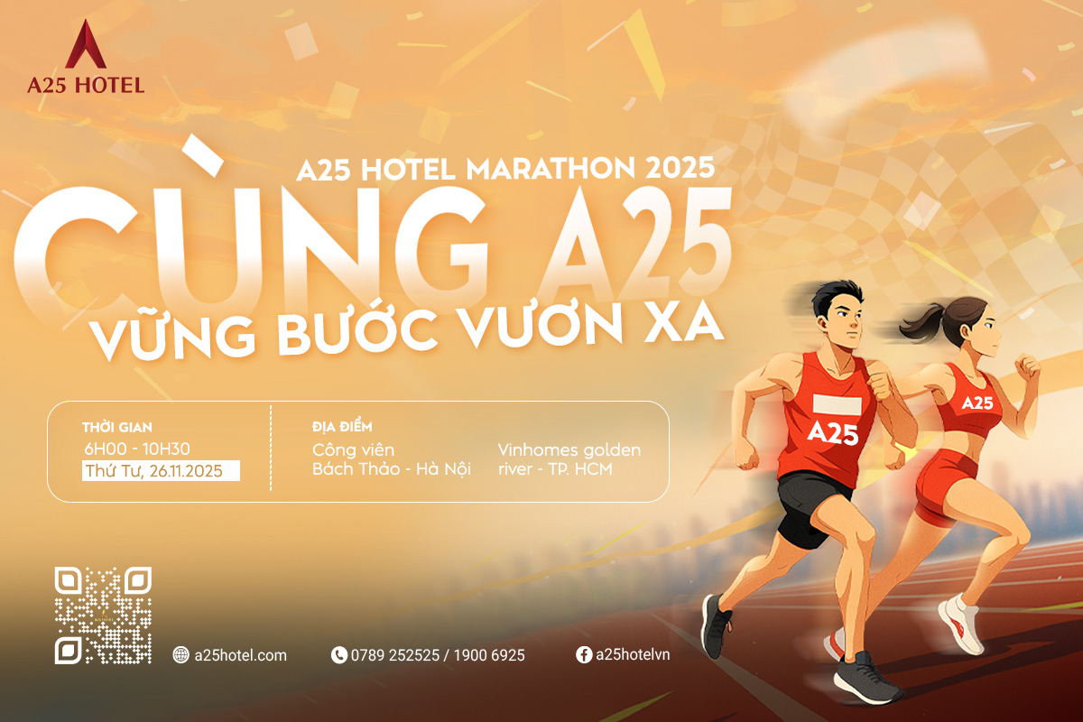 Năm 2025 đánh dấu hành trình phát triển bền vững hơn 20 năm của Hệ thống khách sạn A25, và cũng là năm đầu tiên A25 tổ chức giải chạy bộ nội bộ toàn quốc – A25 MARATHON 2025.