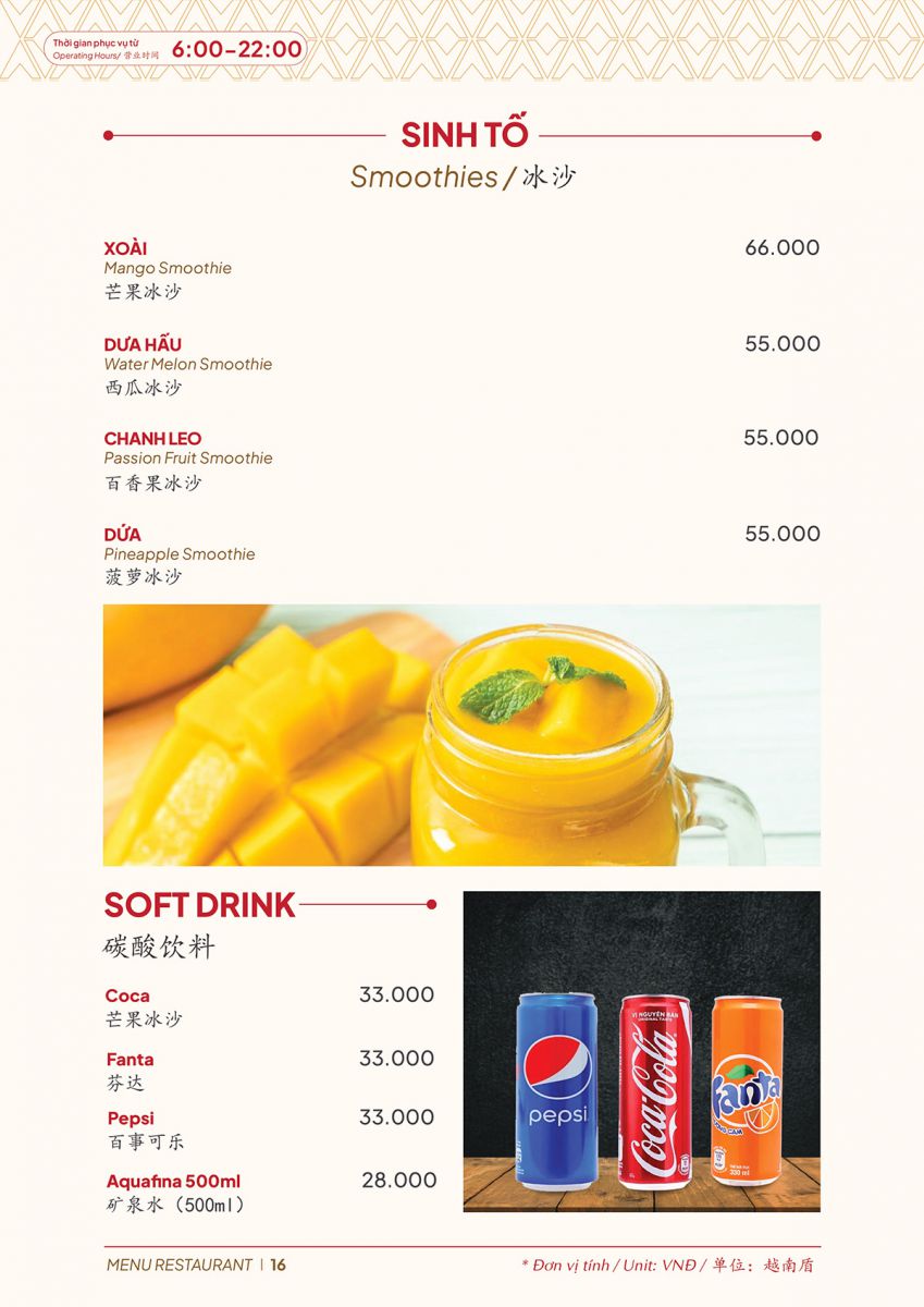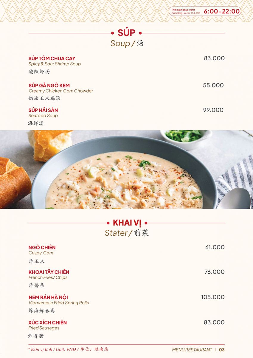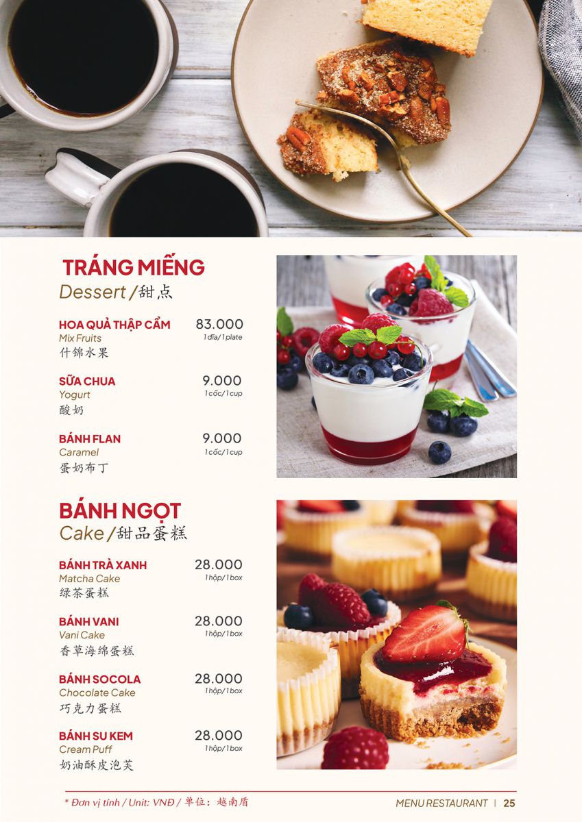 A25 Hotel Restaurant Menu – Ho Chi Minh City