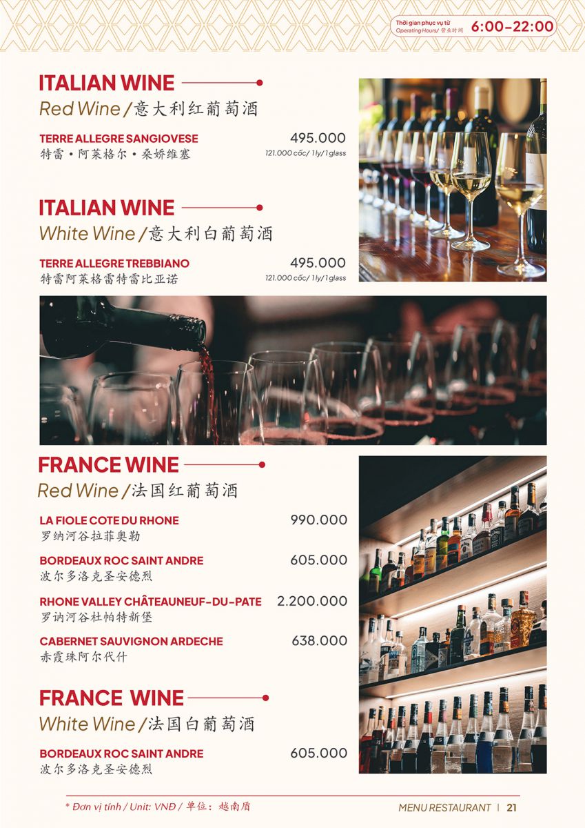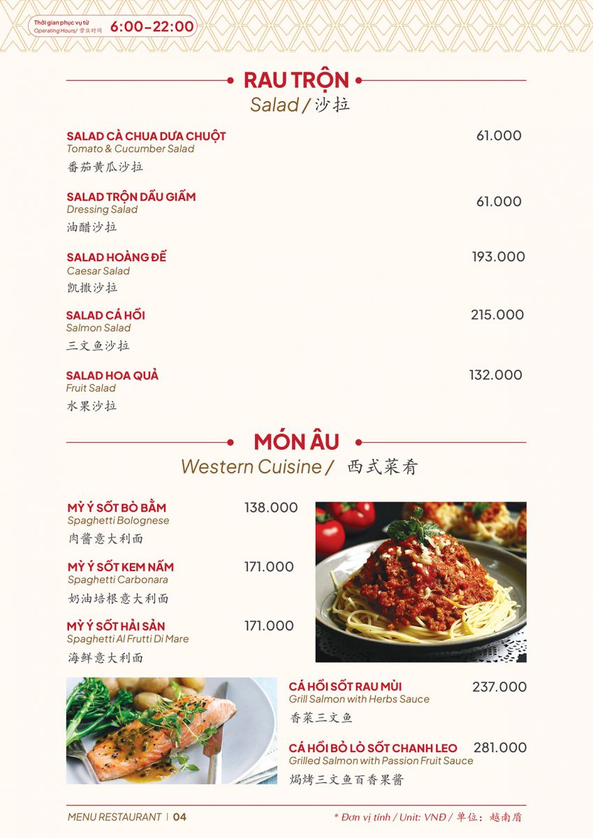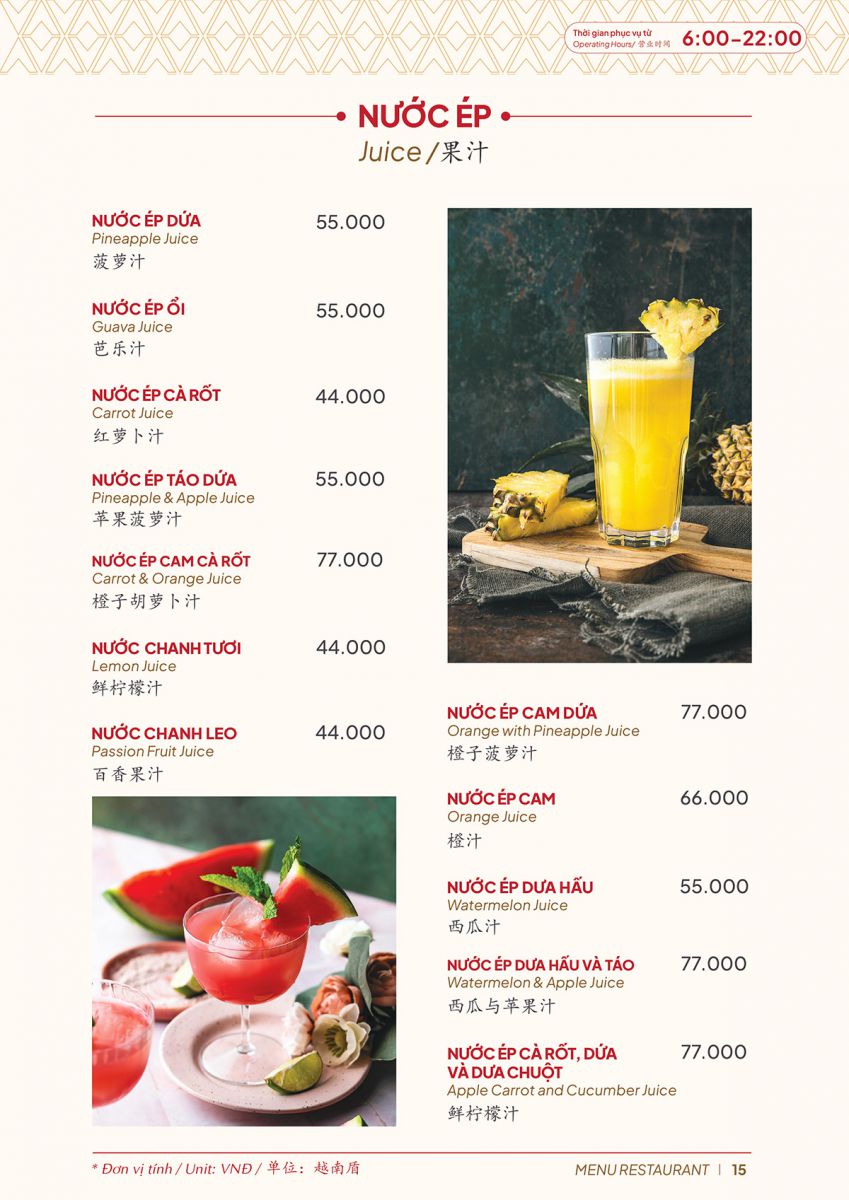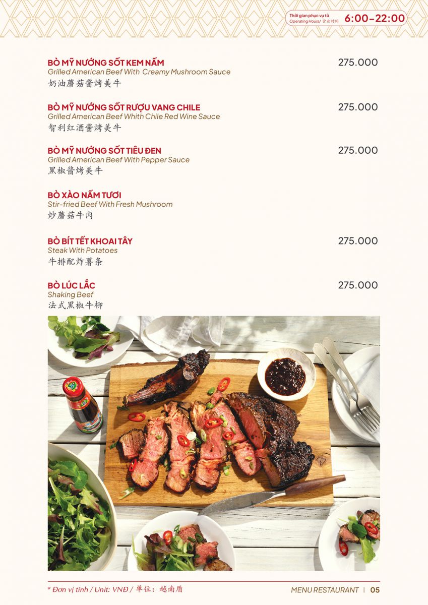 A25 Hotel Restaurant Menu – Ho Chi Minh City