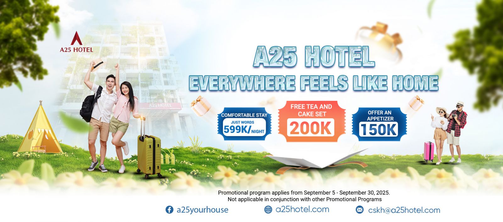 - Valid booking channels: A25 Hotel Fanpage, hotline 0789 25 25 25, or the official website a25hotel.com.